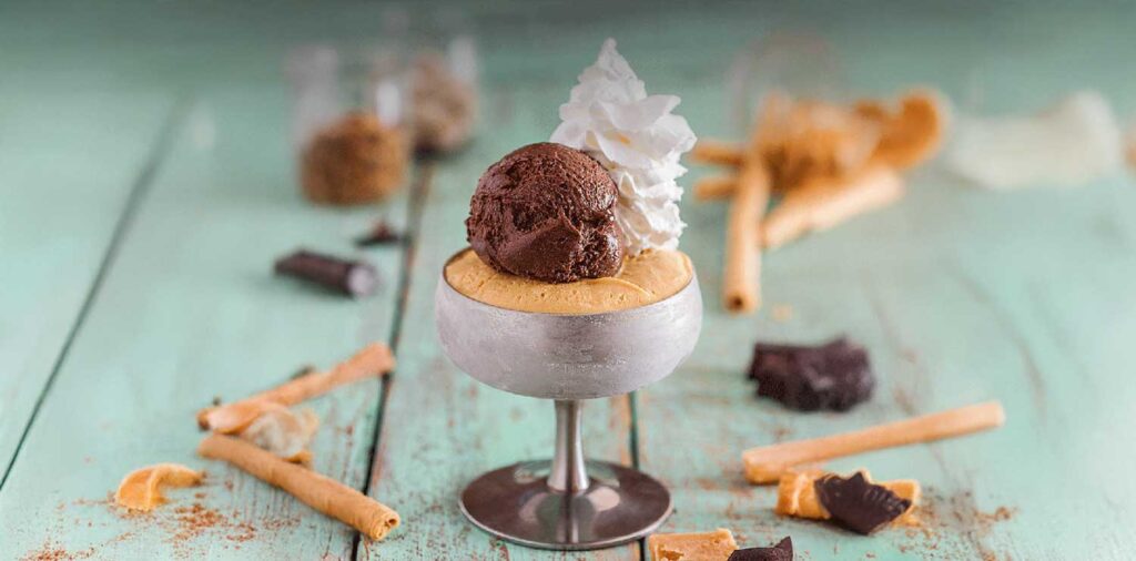 Caramel et chocolat avec chantilly